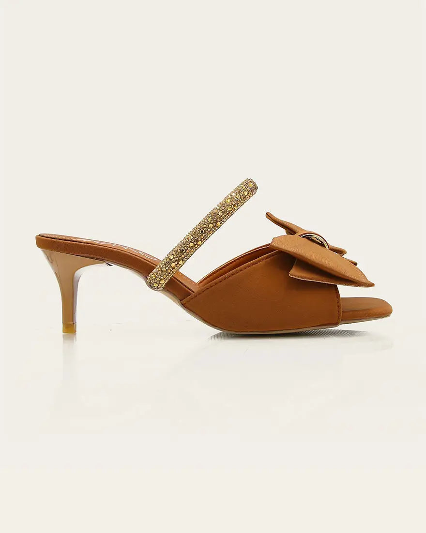 Zareenah is designed for the graceful woman who values timeless elegance. These mid-block heels feature soft mesh panels with delicately layered straps, offering both breathability and style. The muted shimmer and lightweight construction make it a must-have for festive wear...